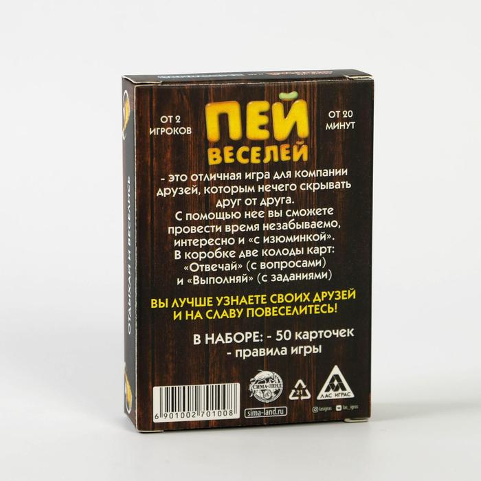 Купить игра для компании "пей веселей" 50 карт от 180 руб. с доставкой до пункта выдачи в Охе. Интернет магазин ДекаМаркет. Оплата при получении.