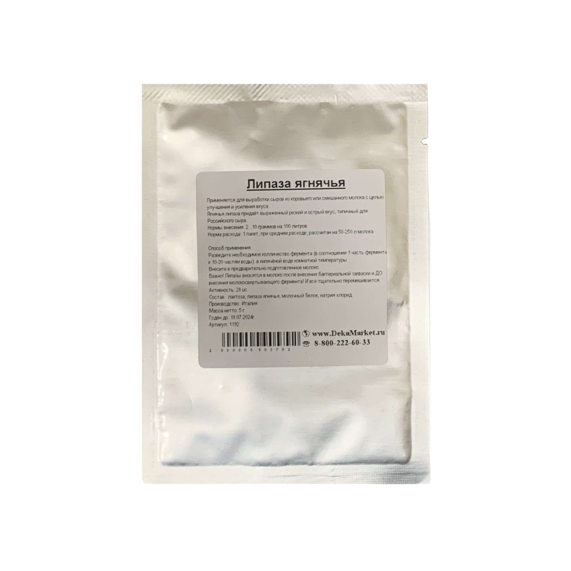 Состав: липаза ягнячья, хлорид натрия, сухое молоко, сухая молочная сыворотка